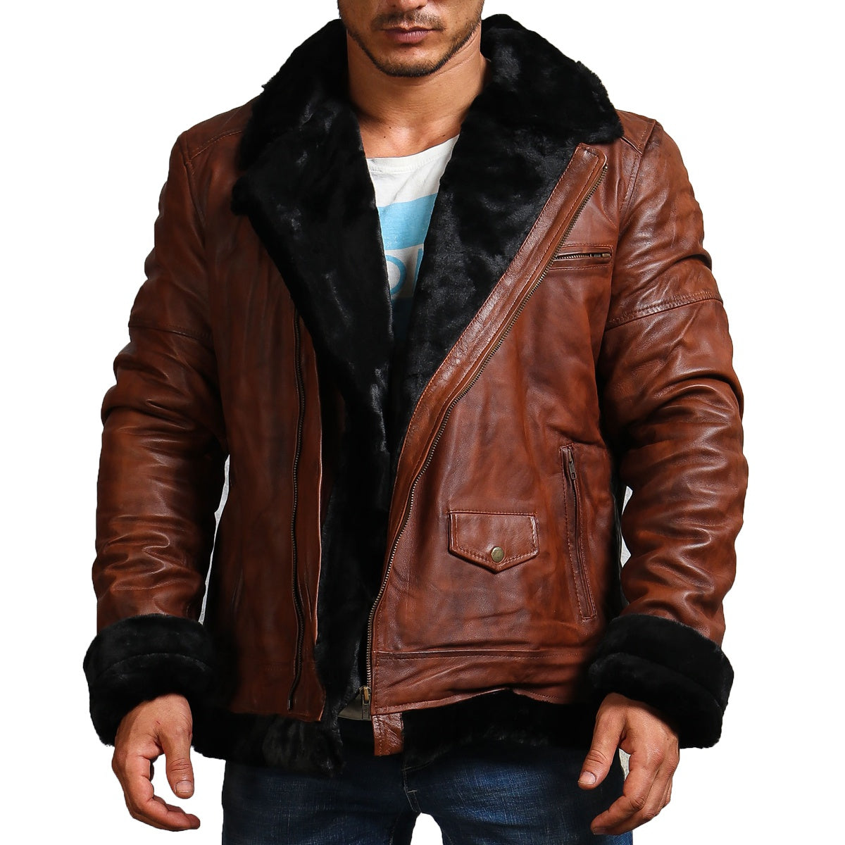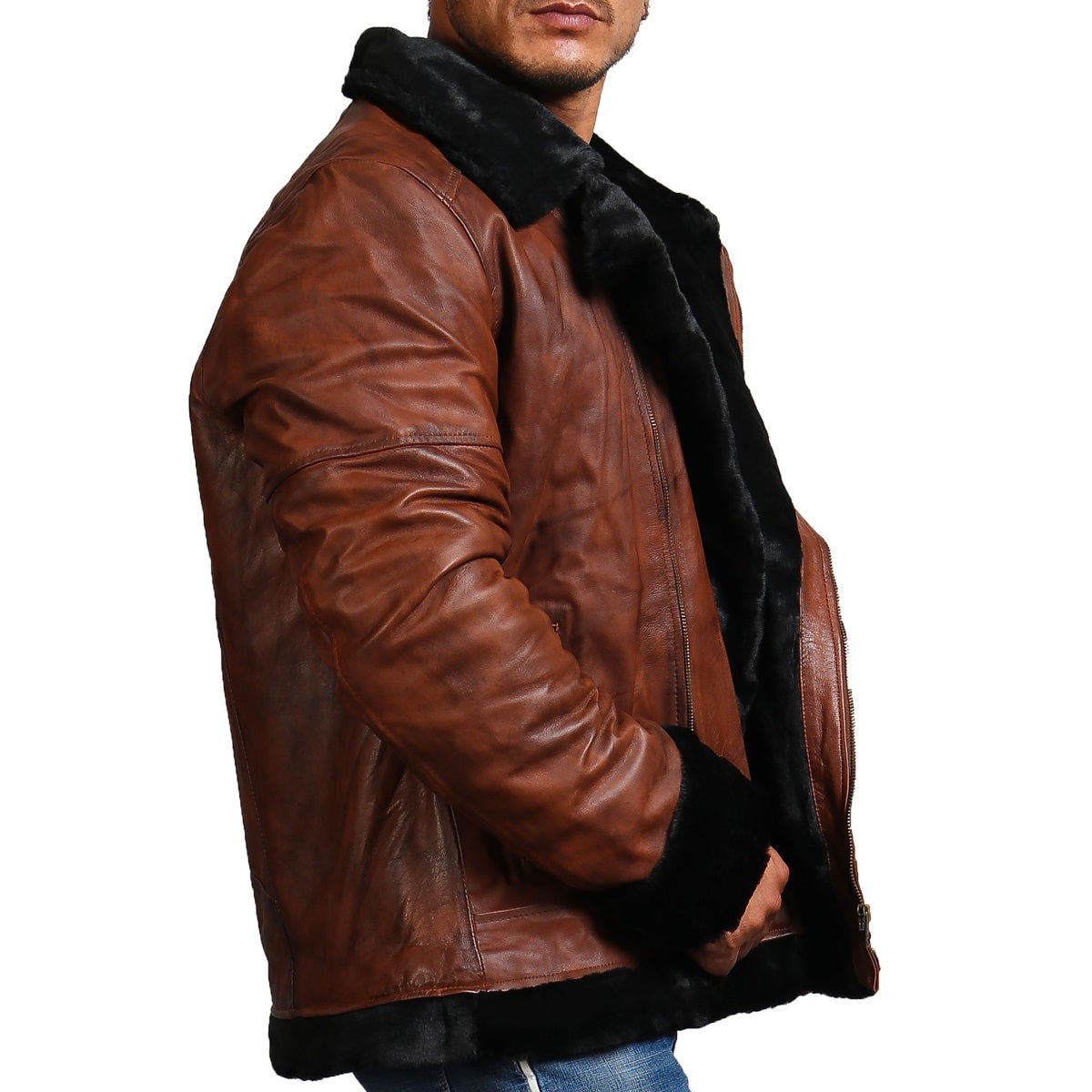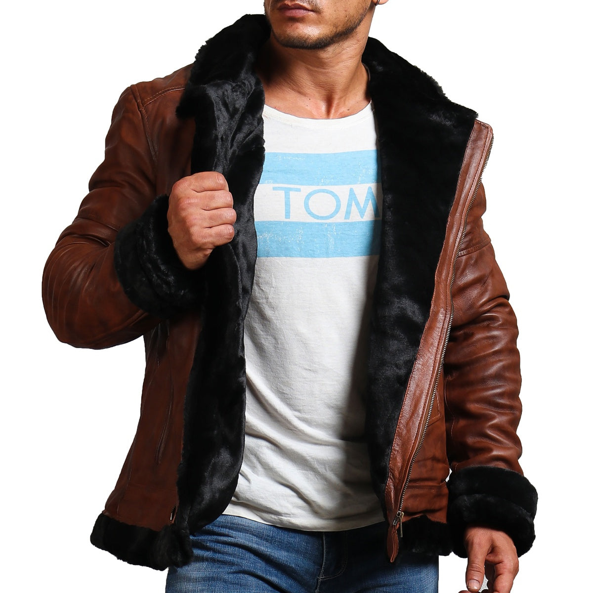 Men's B3 Brown Shearling Genuine Leather Jacket