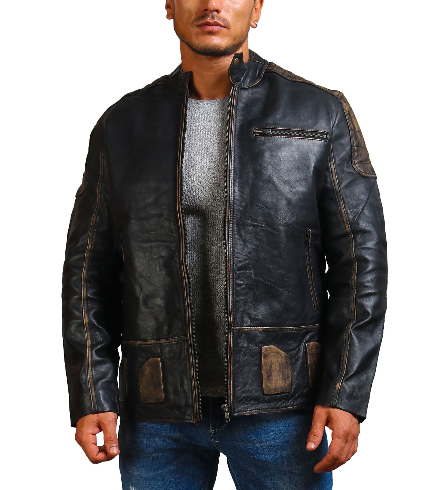 Men's Biker Black Distressed Leather Jacket - Biker Leather Jacket