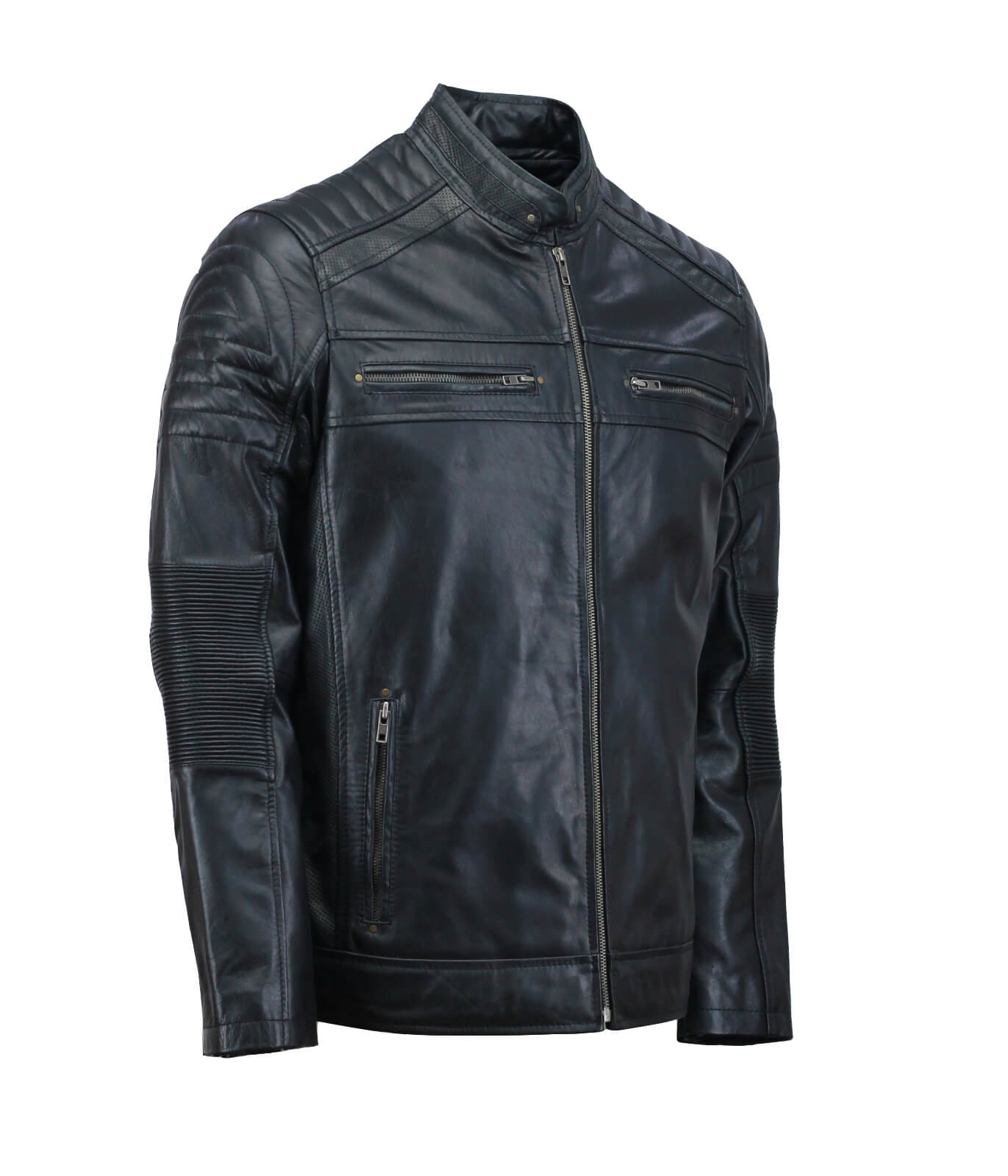 Introducing the embodiment of rugged elegance with the men black café racer jacket. Designed for all our bikers looking for style with comfort, this black jacket is manufactured with the highest quality genuine leather, ensuring durability against scratches, while the interior made from premium viscose adds an extra layer of protection from winds and cold.