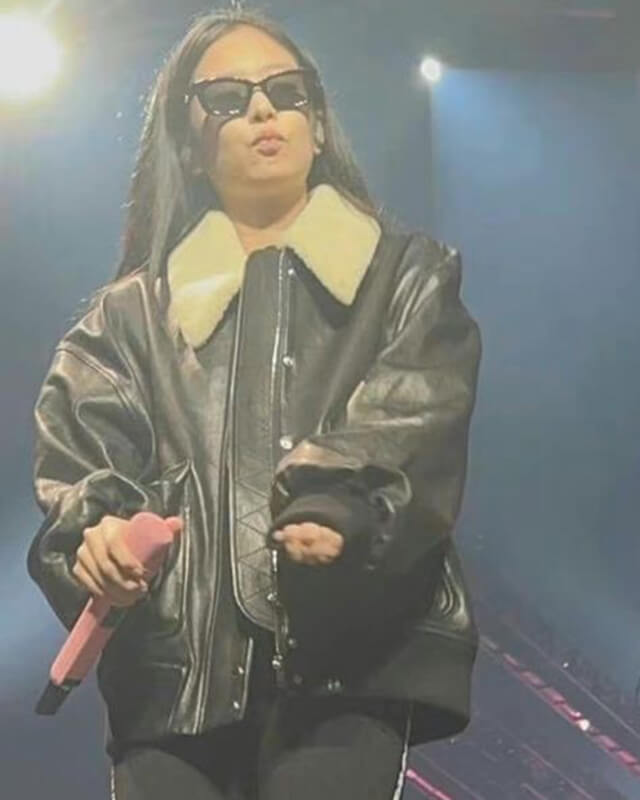 Blackpink Jennie Fur Collar Oversized Leather Jacket
