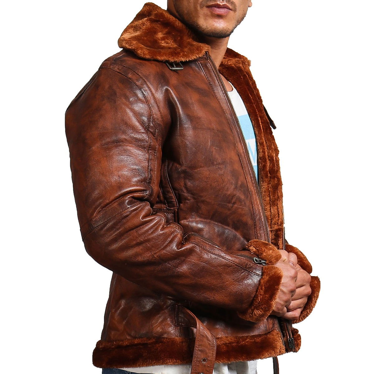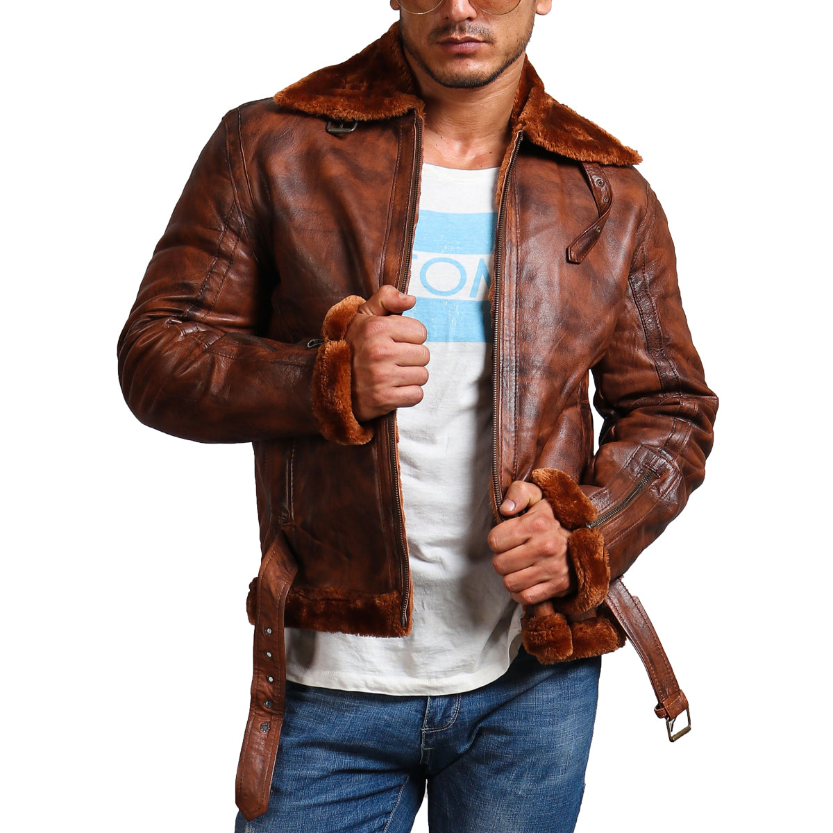 Embrace urban fashion with the AlexGear brown shearling bomber jacket, an outerwear made for those who do not shy away from daring styles. Exuding rich brown hues, the jacket boasts timeless sophistication, making it a classic standout piece in your wardrobe.