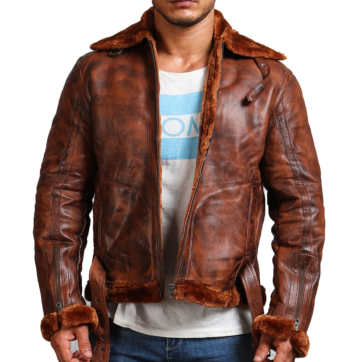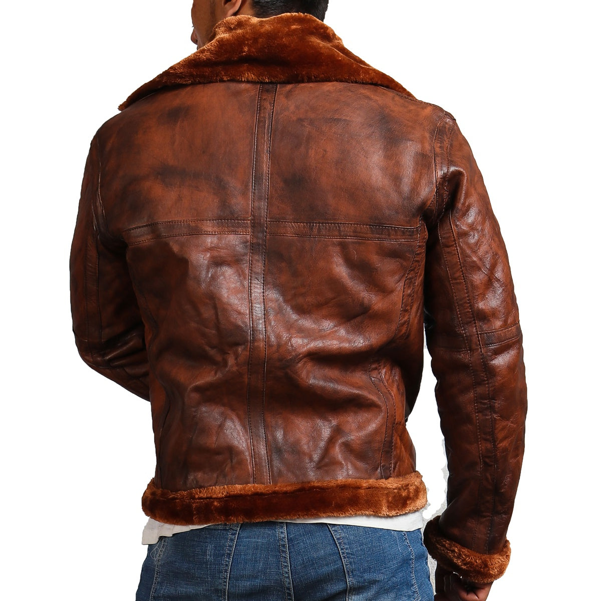 Brown Bomber Leather Jacket with Fur lining