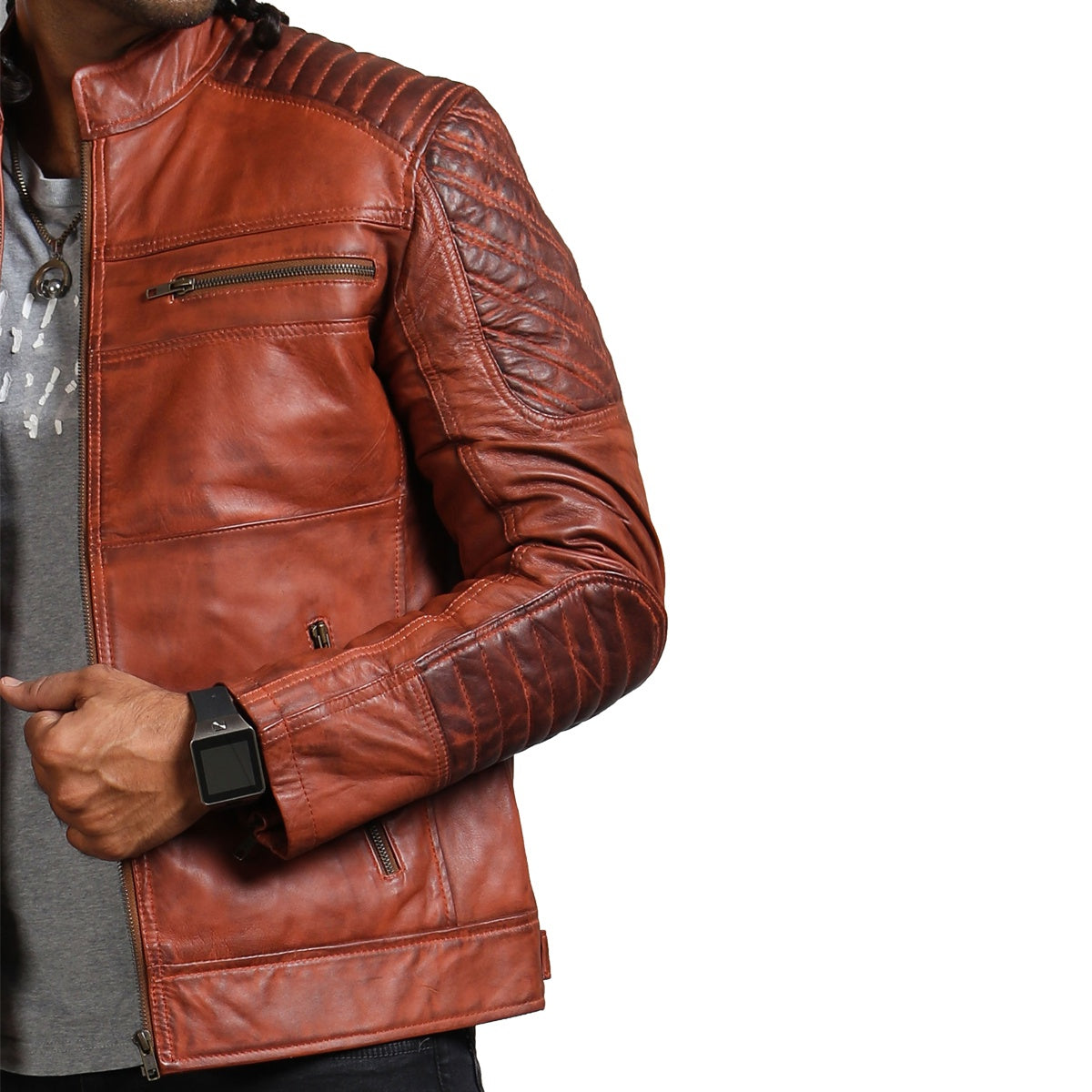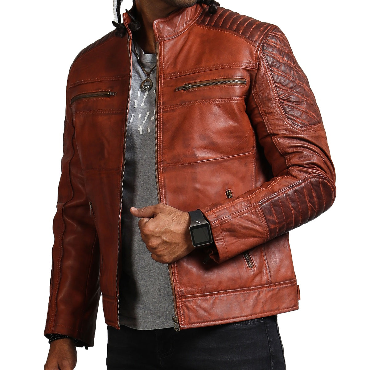 Brown biker style leather jacket for men is crafted to perfection by our skilled craftsmen. This brown leather jacket is hand waxed and made from finest quality real leather.