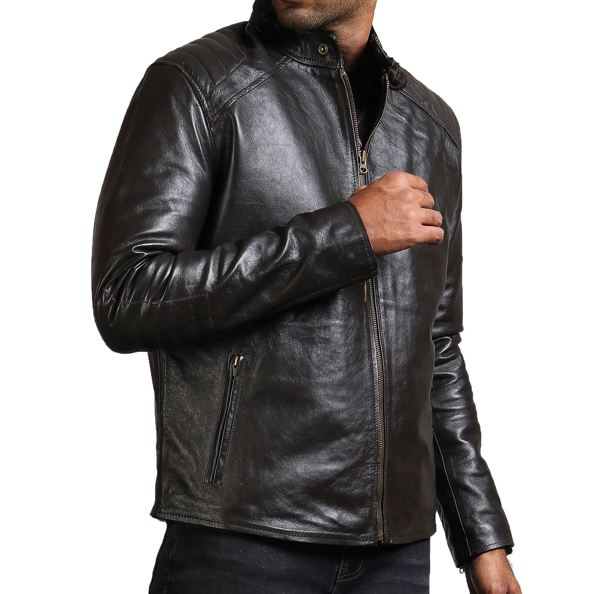 Showcase your love for biking aesthetics with AlexGear dark brown sword jacket, designed for those who are always on the go. This highly unique outerwear jacket is tailored to perfection and is a statement piece in your closet. Featuring meticulous craftsmanship and the use of top-quality materials, this brown biker jacket is crafted from 100% genuine leather, ensuring durability and resilience against wear and tear and keeping you protected from harsh environmental factors you might encounter on your adventures. The interior is also designed to give the utmost comfort to our customers and is equipped with premium viscose lining, which ensures a snug fit paired with added insulation, making this jacket suitable for all weather.
