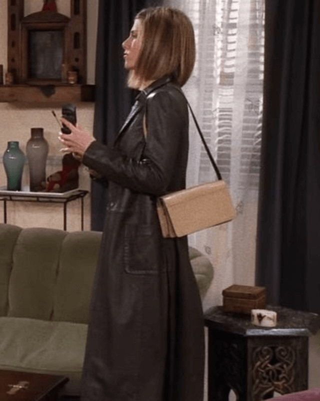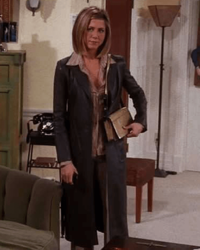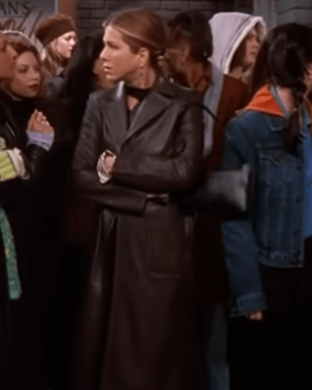Inspired by the fashion icon and style diva Jennifer Anniston, who heavily influenced all trends in the 90's, ranging from hairstyles to outfits, we are introducing Rachel Green brown leather long coat adorned by her in Season 7, Episode 17 of the series. Setting her apart from the crowd, Rachel wore this long coat during the wedding dress hunt for Monica. The exterior is constructed from 100% genuine leather, which ensures durability and luxurious allure. Equipped with two outer and one inner pocket, this women's brown coat offers ample storage for all your essentials, making it not only stylish but also practical.