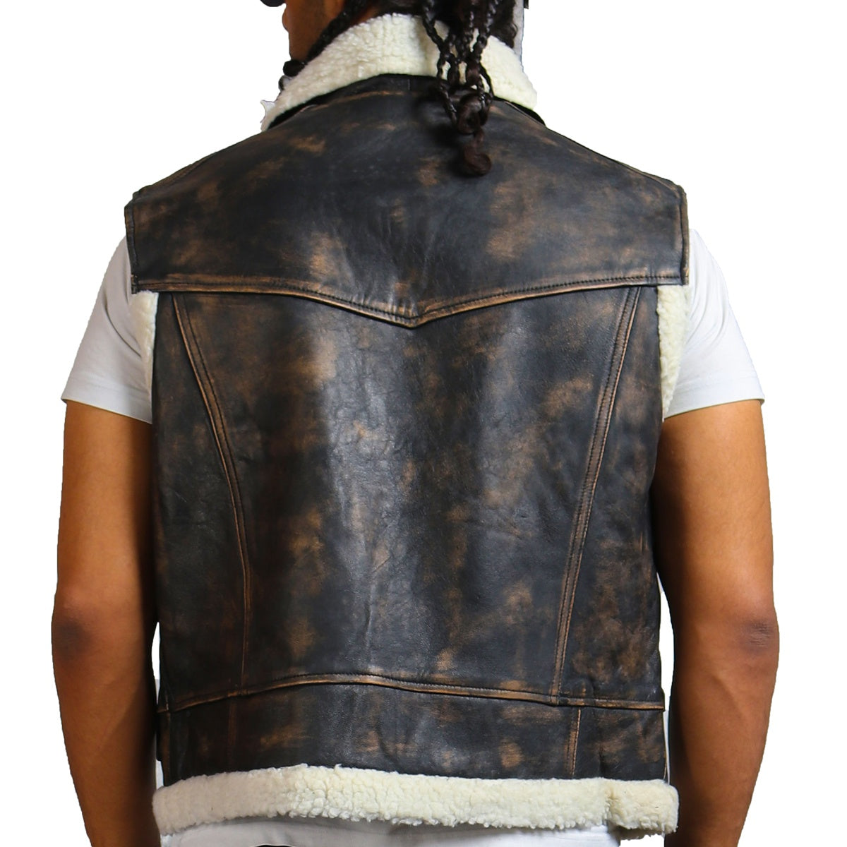 Men Shearling Dark Brown Leather Vest