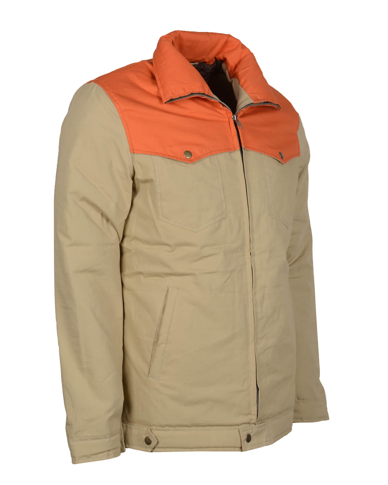Introducing the John Dutton Yellowstone Jacket, adorned by Kevin Costner in the series, for all fashion enthusiasts wishing to recreate the same look. The jacket boasts a unique combination of orange and beige, creating striking contrast and effortlessly complementing the overall aesthetic of the jacket. Manufactured using top-quality cotton, this jacket features style and functionality. The interior, made from premium viscose, adds protection, elevating the overall comfort of the jacket. Additionally, the full zipper closure ensures a smooth experience, allowing you to effortlessly adopt any look. This jacket also showcases four exterior and two interior pockets, offering storage, making it ideal for individuals seeking fashion and practicality.