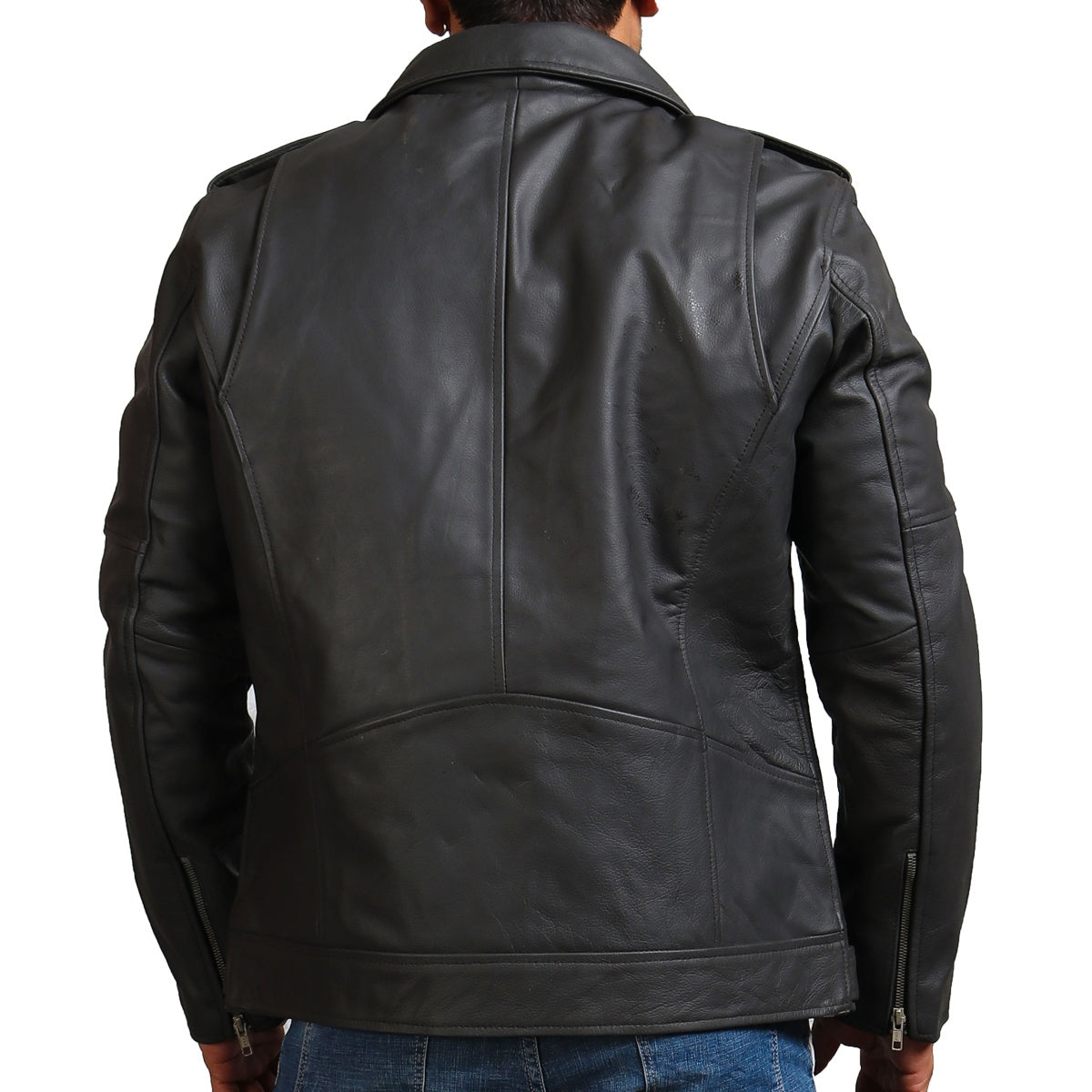 Exude confidence with the AlexGear classic grey biker jacket, made for daring individuals and pleasure seekers. Meticulously crafted with attention to detail, this black biker jacket utilizes premium-quality genuine leather, making it an indispensable outerwear.