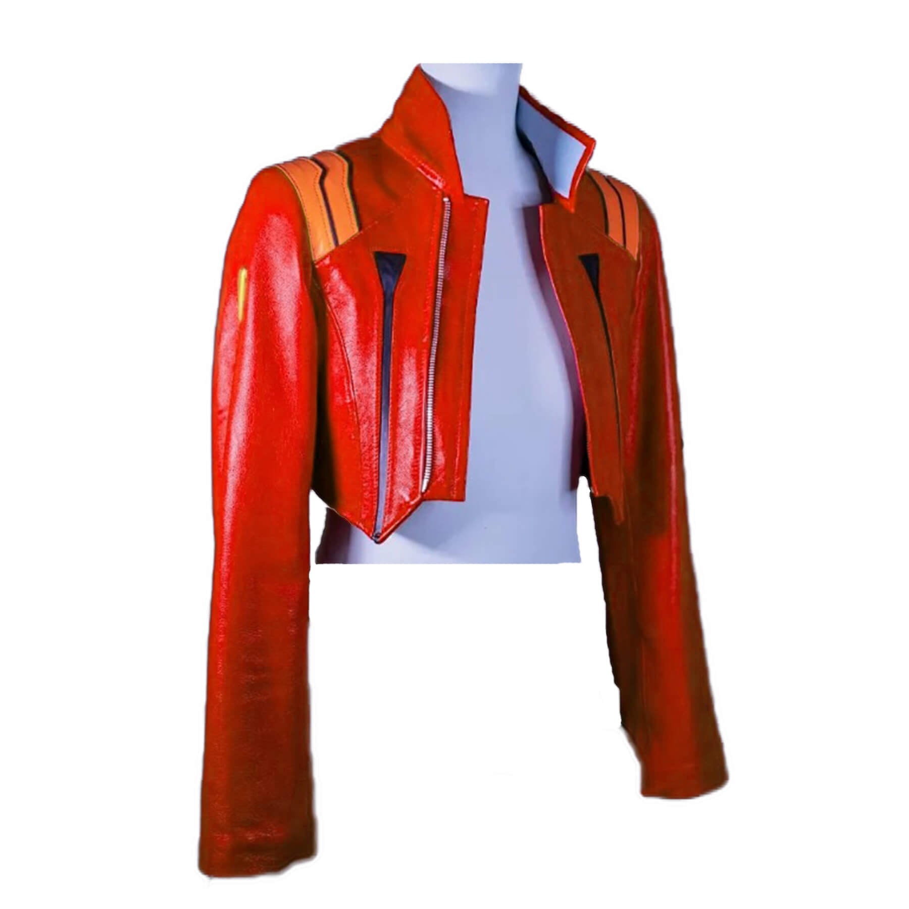 Finest quality genuine leather craftsmanship is one of the most redeemable feature of this product. Additionally, this cropped red jacket also includes inner viscose lining with full length sleeves and full zipper closure making it a must have for those seeking to cosplay Neon Genesis Evangelion characters.