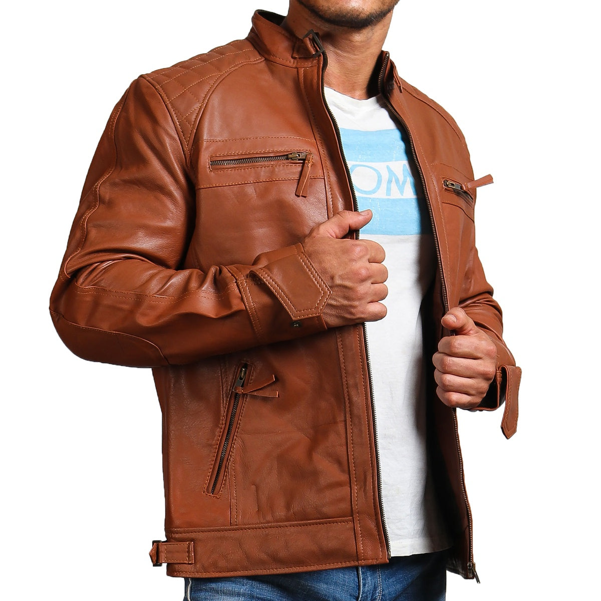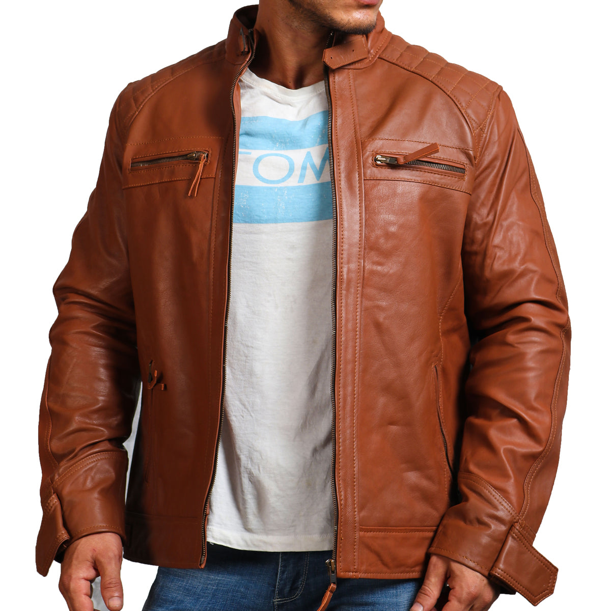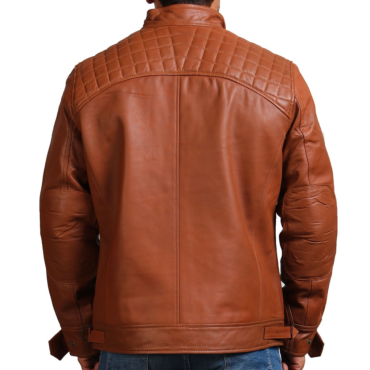 Brown Quilted Shoulders Leather Jacket