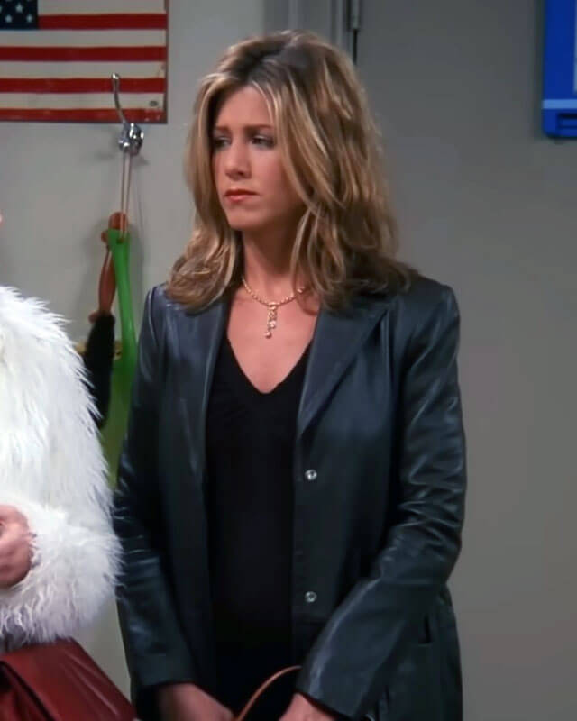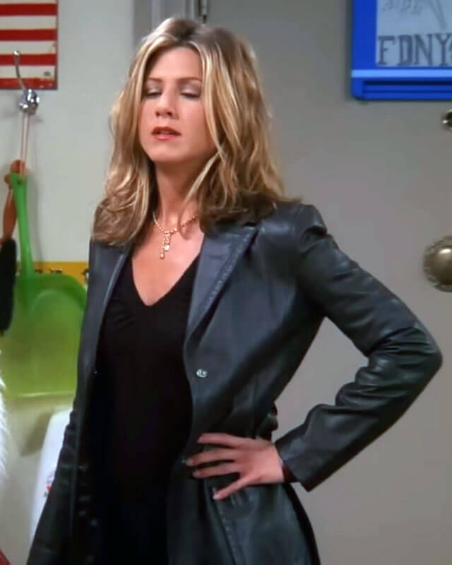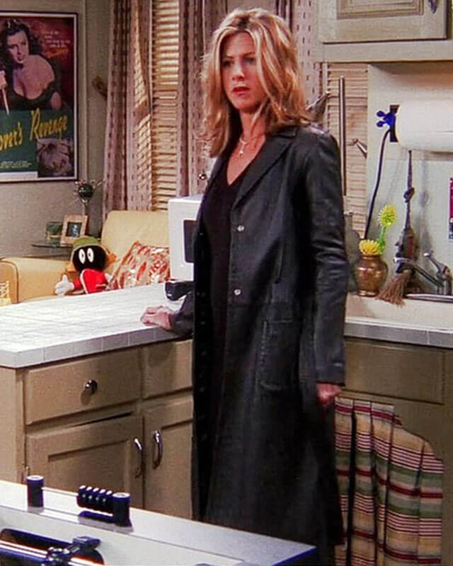 Embrace timeless sophistication with our long black leather coat, adorned by Jennifer Aniston as Rachel Green in season 8 of the comedy sitcom Friends. The episode where Joey's sister seeks help from Rachel. Showcasing the top-notch work of our skilled craftsmen, the outerwear is crafted from high-quality genuine leather, paired with soft viscose on the interior. Perfectly capturing the city chic style, this long Rachel leather coat is ideal to be worn for a formal dinner or an important meeting, elevating the look of your outfit and giving it that missing edge.