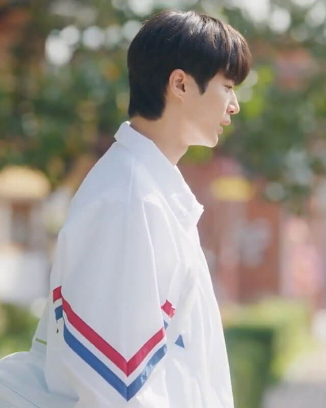 Inspired by this iconic look, we are introducing Ryu Sun Jae striped white jacket, adorned by Byeon Woo-seok in the TV series Lovely Runner. Constructed using premium-quality cotton, this jacket ensures comfort, while the breathable material makes it perfect to be worn in warmer seasons. Wrap yourself in additional warmth due to the utilization of soft viscose on the interior. The white exterior allows versatility, whereas the red and blue stripes add a pop of color, making it visually appealing.