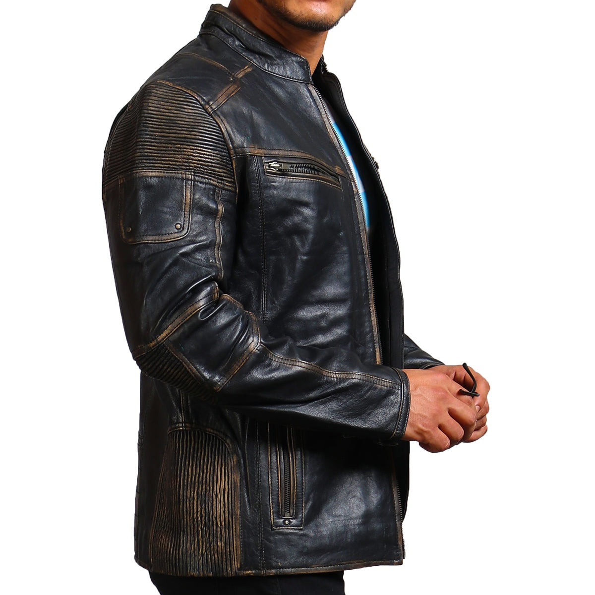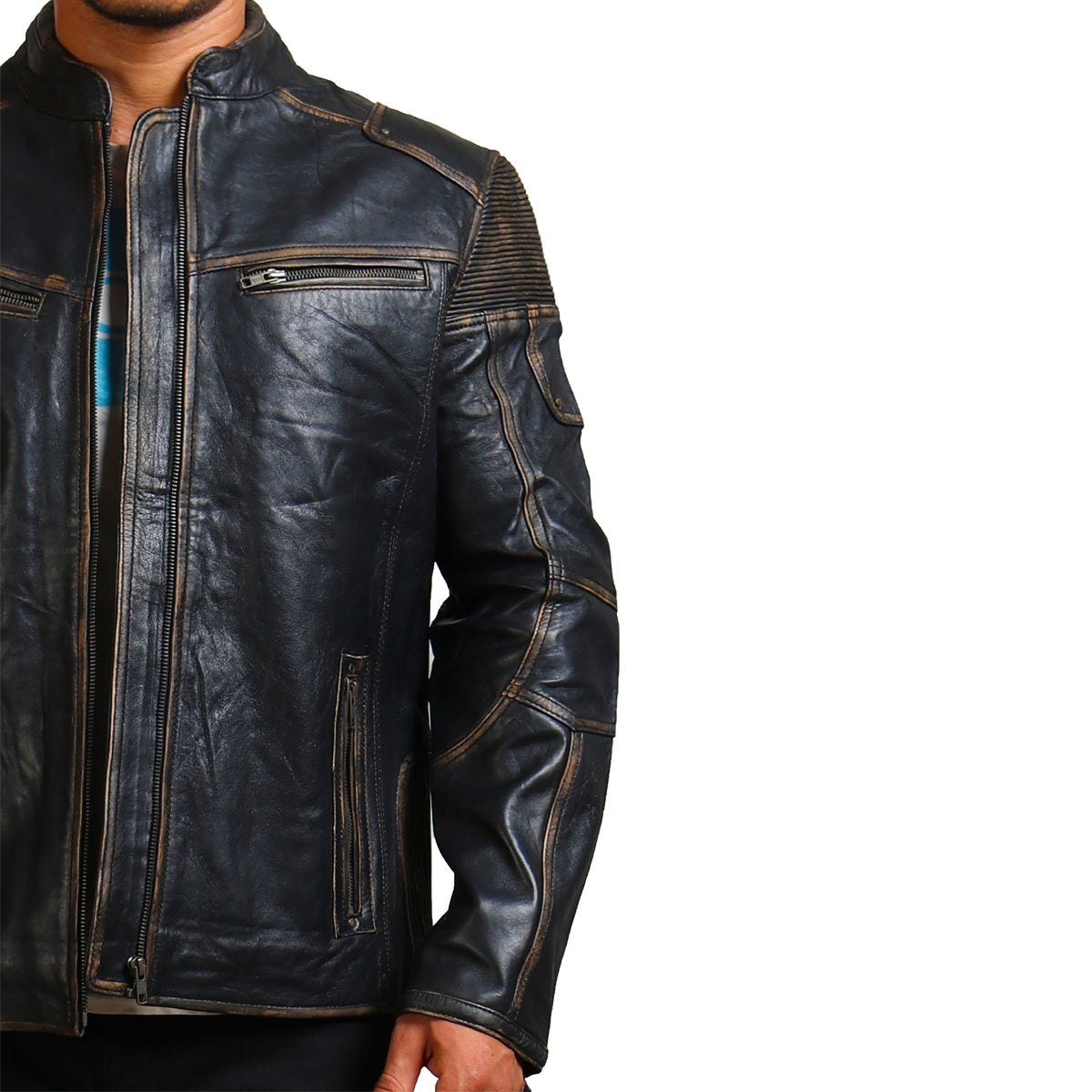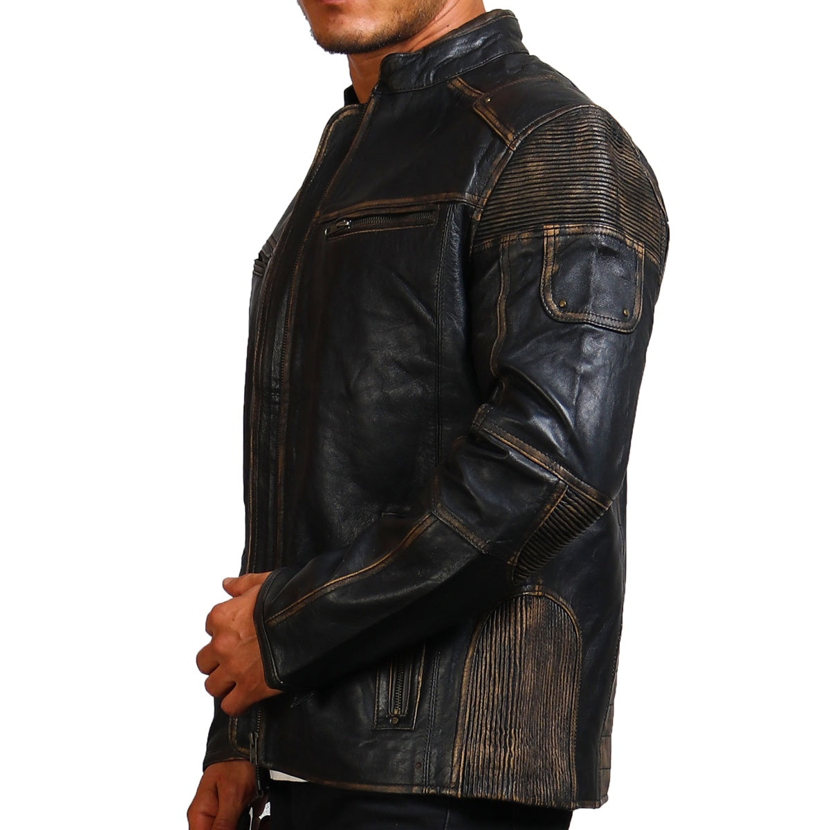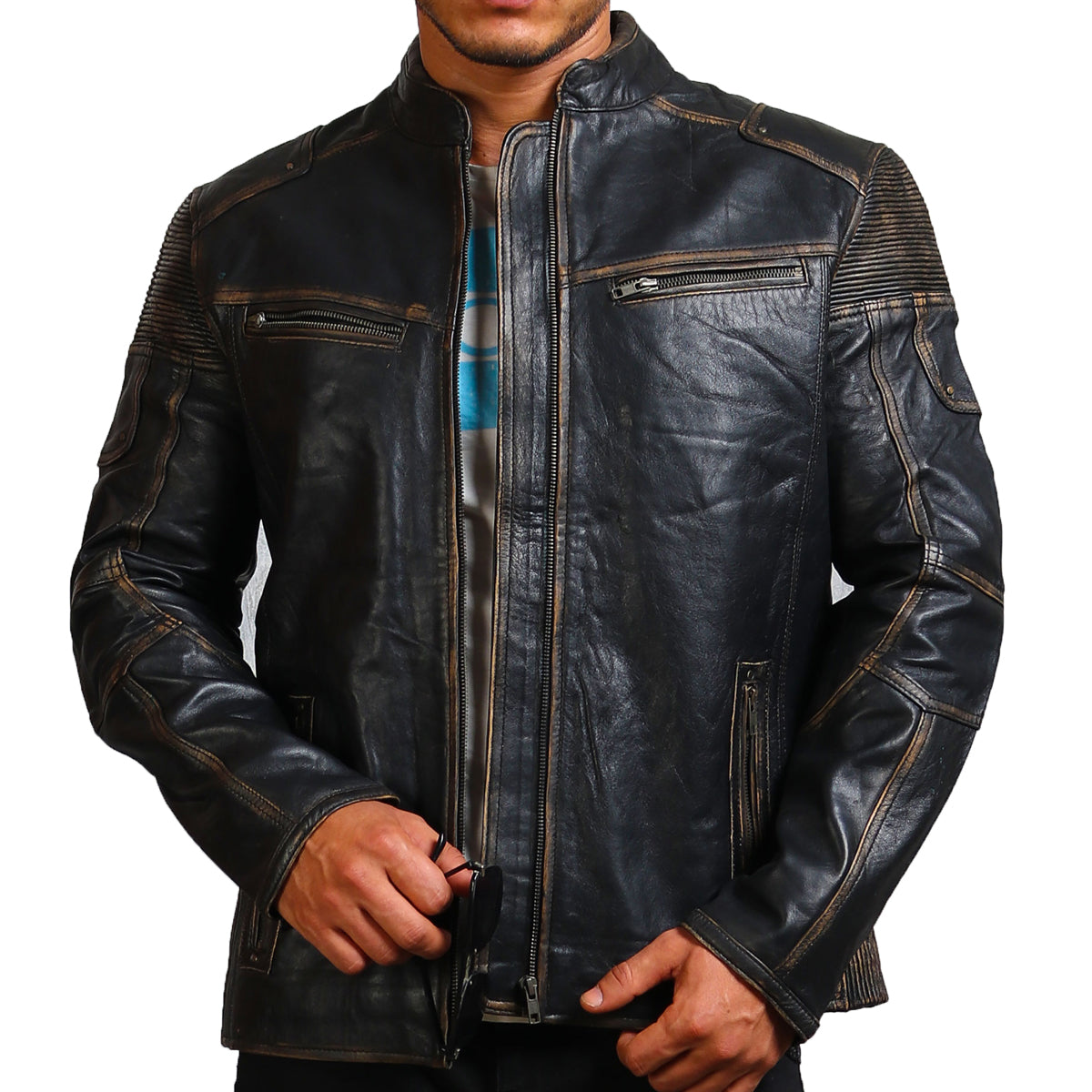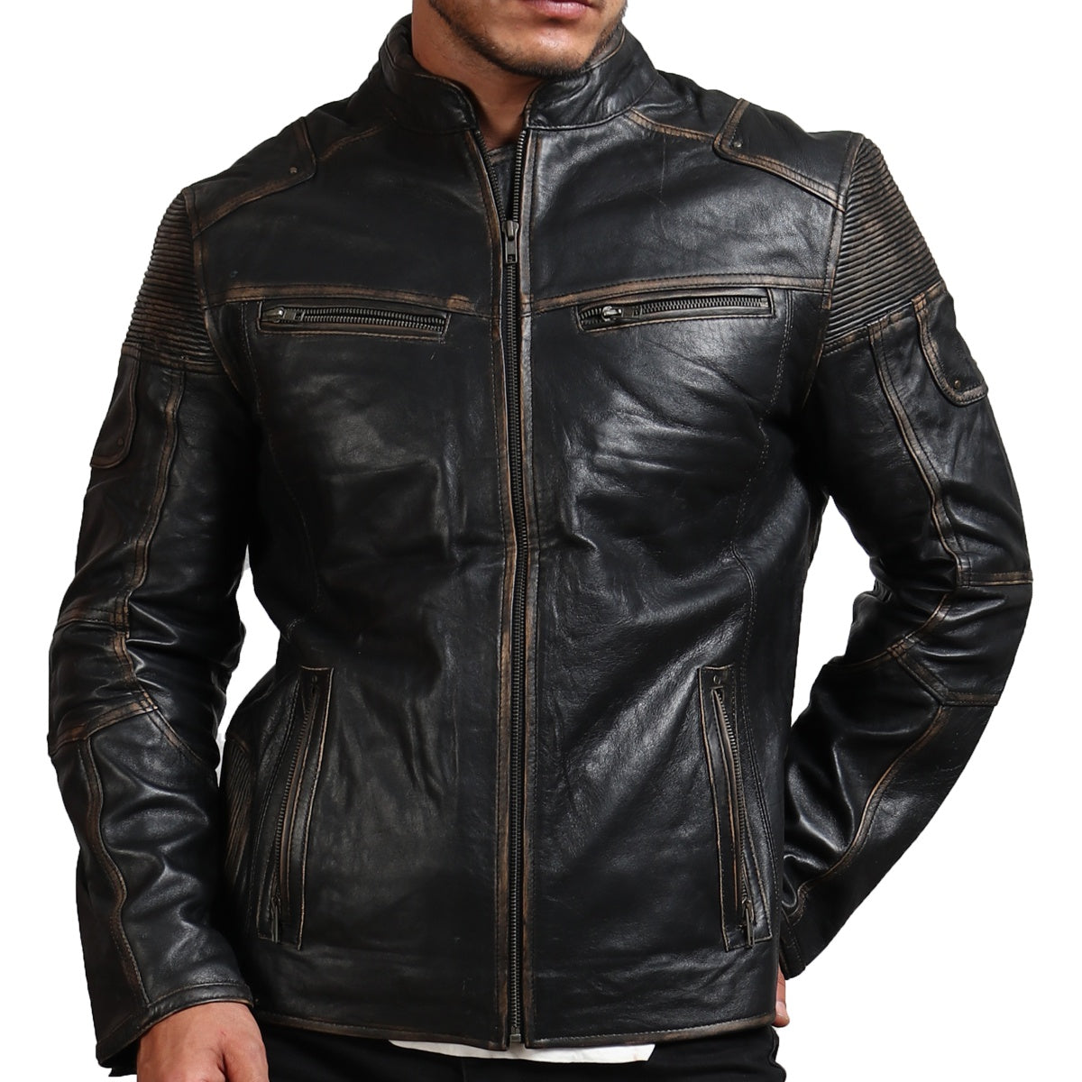 Distressed Black Leather Motorcycle Jacket