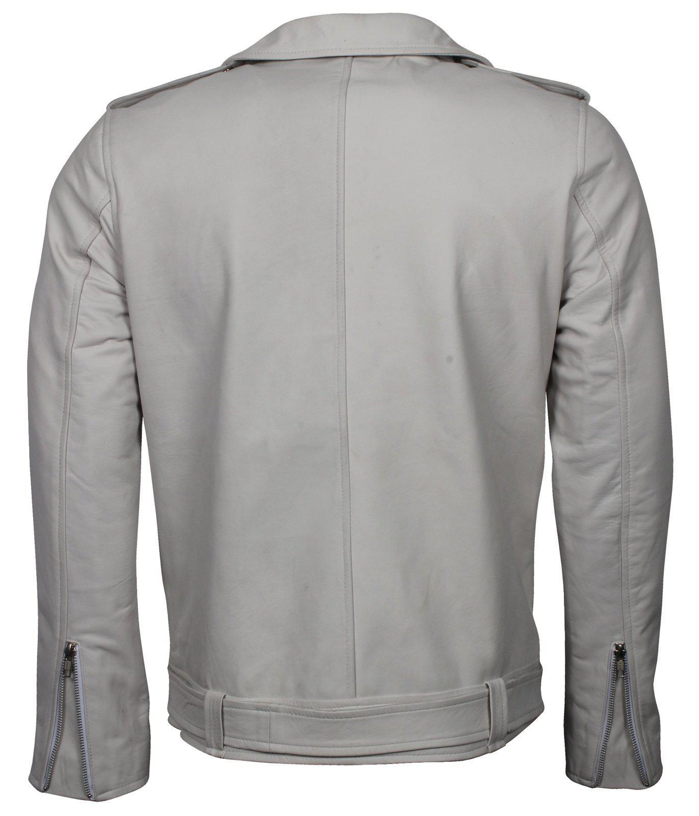 Men's White Classic Rocker Genuine Leather Motorcycle Jacket
