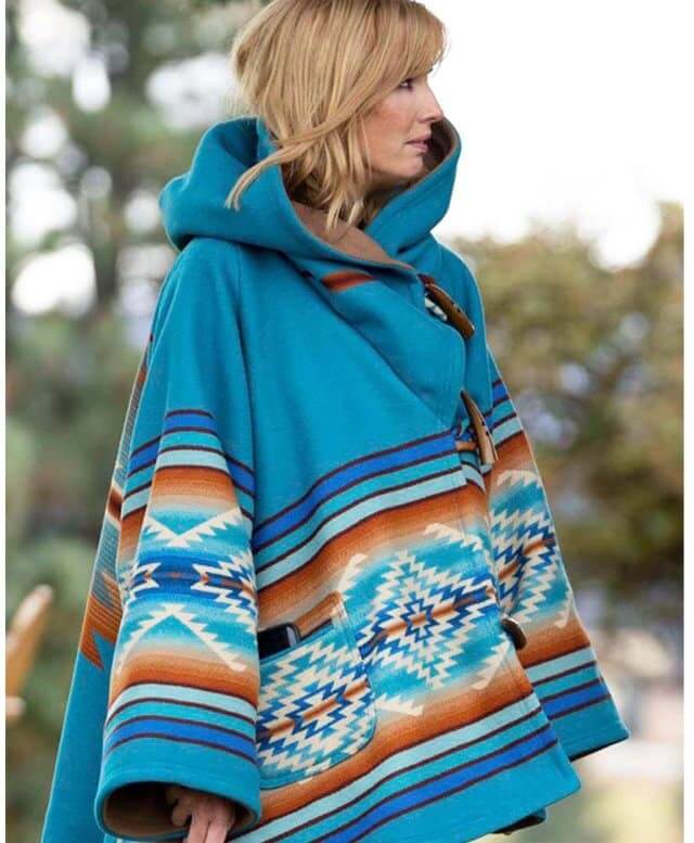 Yellowstone Beth Blue Blanket Cape Coat