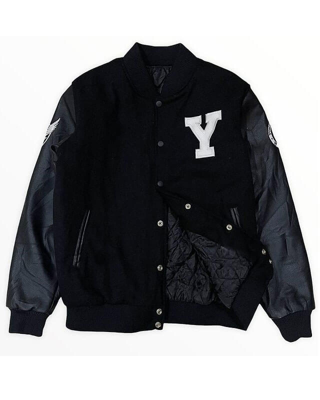 Indulge in the spirit of university life with our Yonsei University black varsity jacket. The jacket is the embodiment of athleisure, cool and perfect for casual every-day looks. The embroidered eagle logo, accompanied by the name, adds a bold and personalized touch to the overall aesthetic. The jacket is crafted with premium-quality genuine leather paired with wool. The classic style button closure adds a touch of practicality. Equipped with a total of four pockets, this letterman jacket offers ample storage, allowing you to carry your necessities with ease.