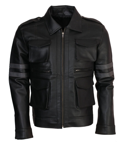 Men's Multi Pockets Evil Resident Cosplay Genuine Leather Jacket