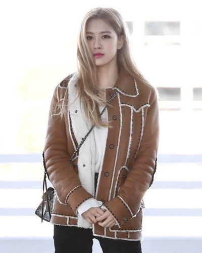 Blackpink Rose Brown Shearling Leather Jacket Women