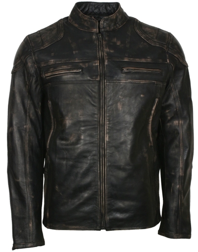 Men's Biker Distressed Leather Jacket With Zipper