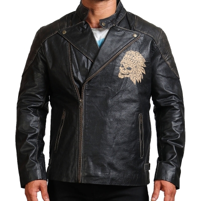 Indian Skull Biker Leather Jacket