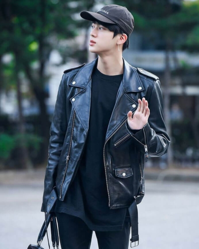BTS Jin Biker Leather Jacket