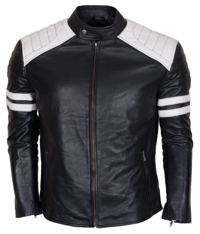 Men's Biker Fashion Black White Padded Genuine Leather Jacket