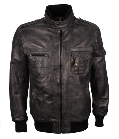 Men's Grey Classic Bomber Genuine Leather Jacket